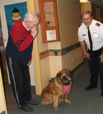 Pet visition ministry allows residents the opportunity to spend time with a gentle loving animal. Community Care worker Dennis Miner brings his dog Sydney to the senior's residence in Parry Sound for just that reason.